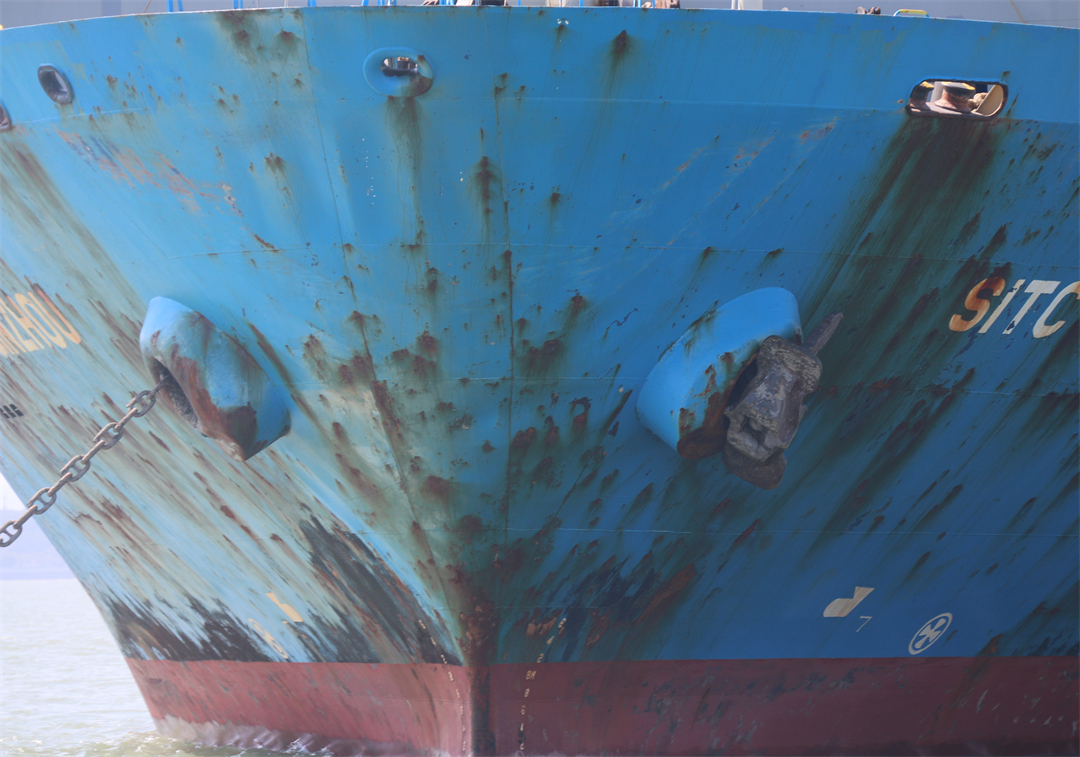 去年4月上旬,專案組通過持續(xù)作戰(zhàn),克服現(xiàn)場(chǎng)取證難、證據(jù)保存難等不利因素,取得多項(xiàng)重要證據(jù),基本還原案件事實(shí)。為徹底閉合證據(jù)鏈,辦案人員多次爬入封閉式左錨鏈艙內(nèi)尋找蛛絲馬跡。最終,在左錨鏈其中一環(huán)上提取到粘連的少量絲狀可疑纖維。經(jīng)送檢比對(duì)確定,該纖維與被損壞海纜的外保護(hù)層纖維物一致,案件取得最確鑿的直接物證。
