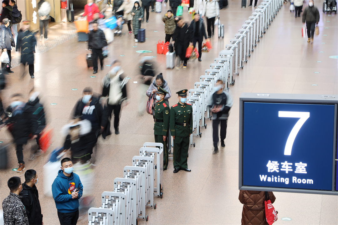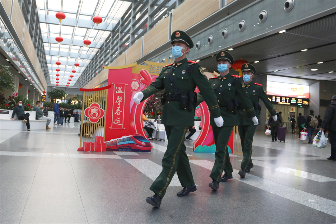 1月26日,全國春運正式拉開帷幕。擔負北京西站守衛(wèi)任務和北京豐臺站定點警戒任務的武警北京總隊執(zhí)勤第六支隊官兵堅守執(zhí)勤戰(zhàn)位,熱心為群眾提供幫助,以實際行動溫暖守護旅客歸鄉(xiāng)路。