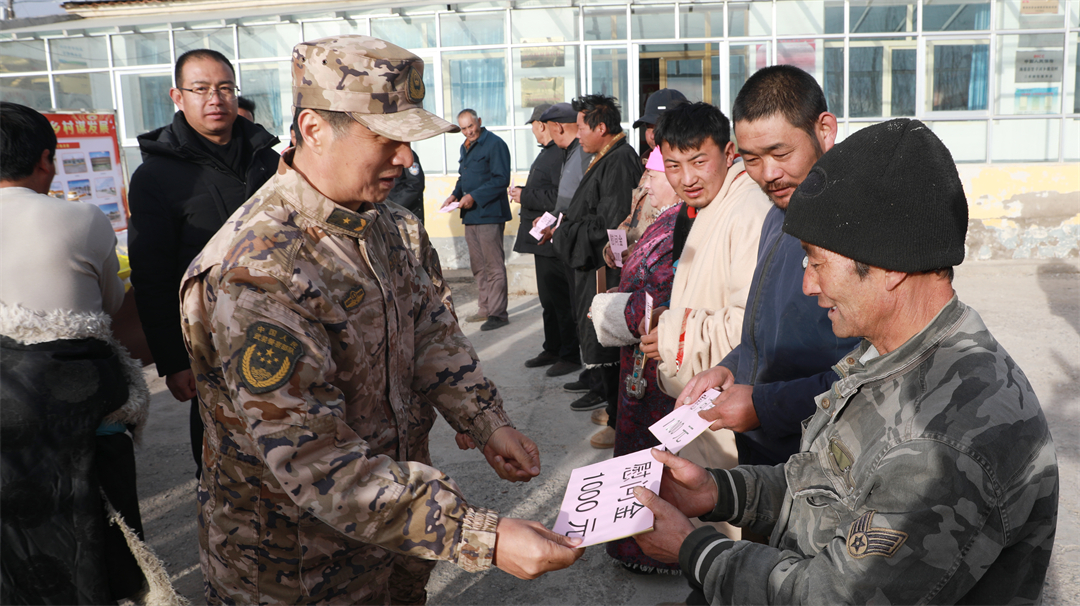如今,俄日村早已脫貧摘帽。臨近春節(jié),村里產(chǎn)業(yè)效益怎么樣?老鄉(xiāng)們掙的錢夠不夠?武警青??傟?duì)政委楊志強(qiáng)一行專程來到村里走訪慰問。
