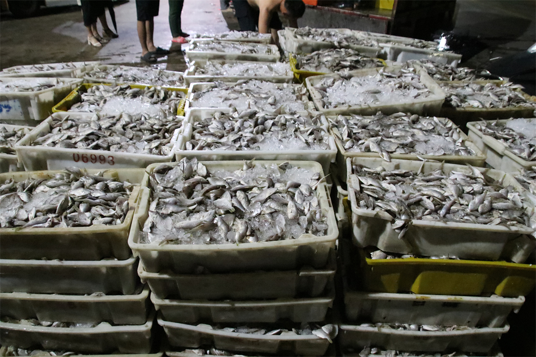 圖為現(xiàn)場查獲的涉嫌非法捕撈漁獲物。