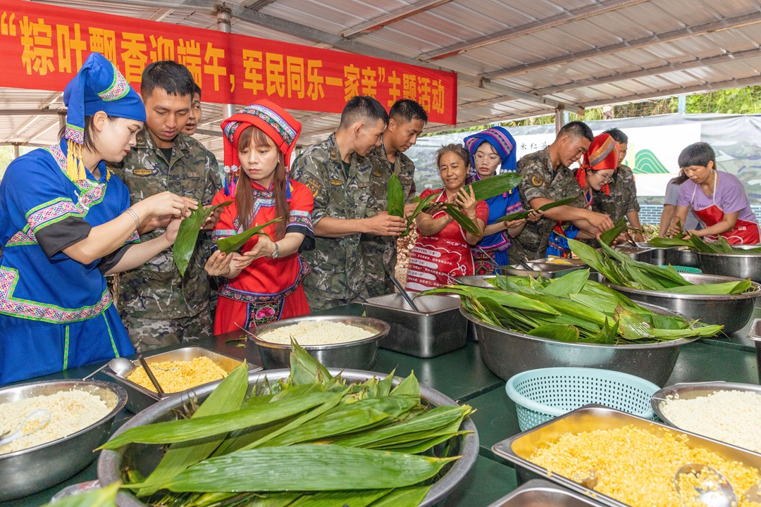 端午佳節(jié)到來之際,武警廣西總隊南寧支隊駐地群眾走進軍營,和官兵們一起包粽子,讓官兵在第二故鄉(xiāng)感受到親情的溫暖。