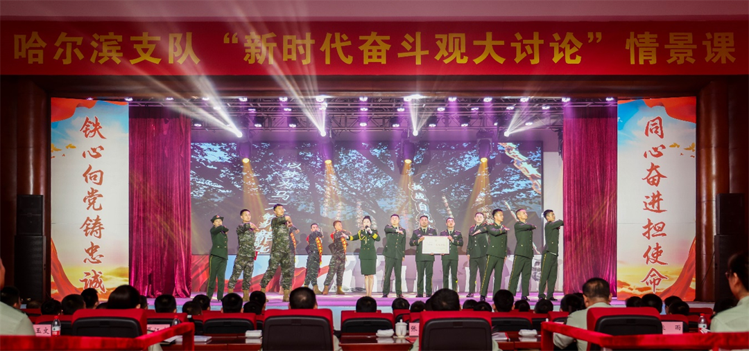 6月21日,武警黑龍江總隊(duì)哈爾濱支隊(duì)創(chuàng)作推出的“新時(shí)代奮斗觀”大討論情景課《綻放的“冰凌花”》精彩上演。