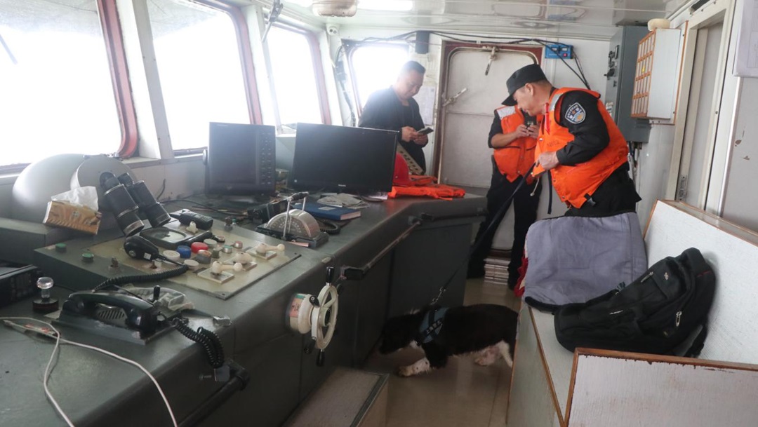 隨著“6·26”國際禁毒日的到來,6月19日,上海市公安局刑偵總隊(duì)緝毒處民警攜帶兩條緝毒犬與上海海警局執(zhí)法員一同,登上正在執(zhí)行巡航任務(wù)的海警浮山艦,對(duì)長江口過往船只進(jìn)行隨機(jī)登臨檢查。