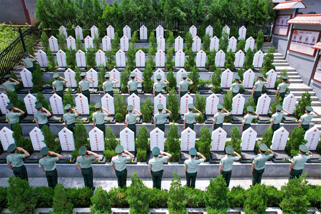 圖為武警官兵向先烈墓碑敬軍禮。
