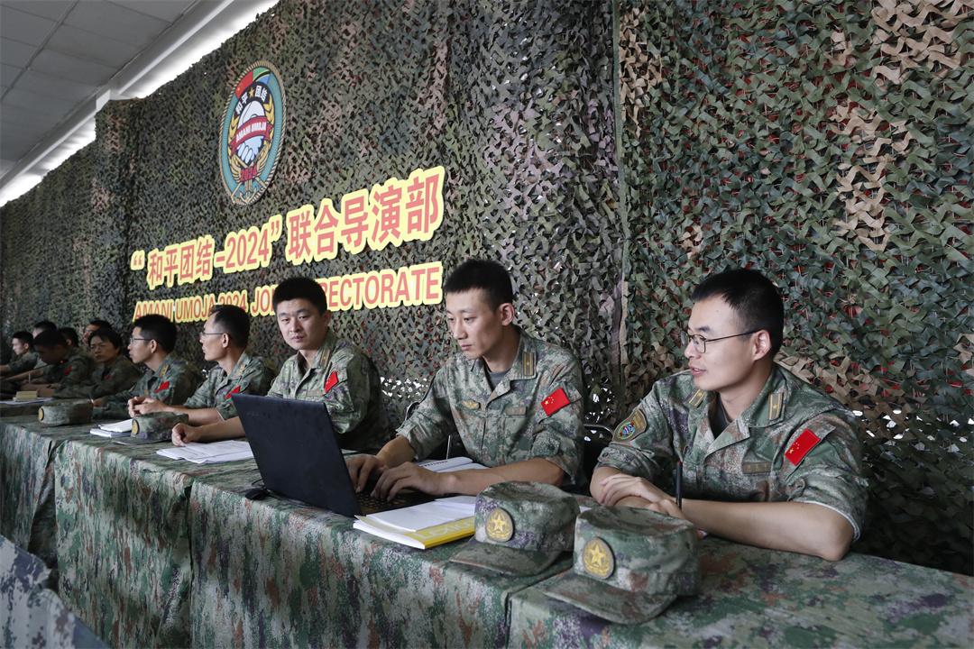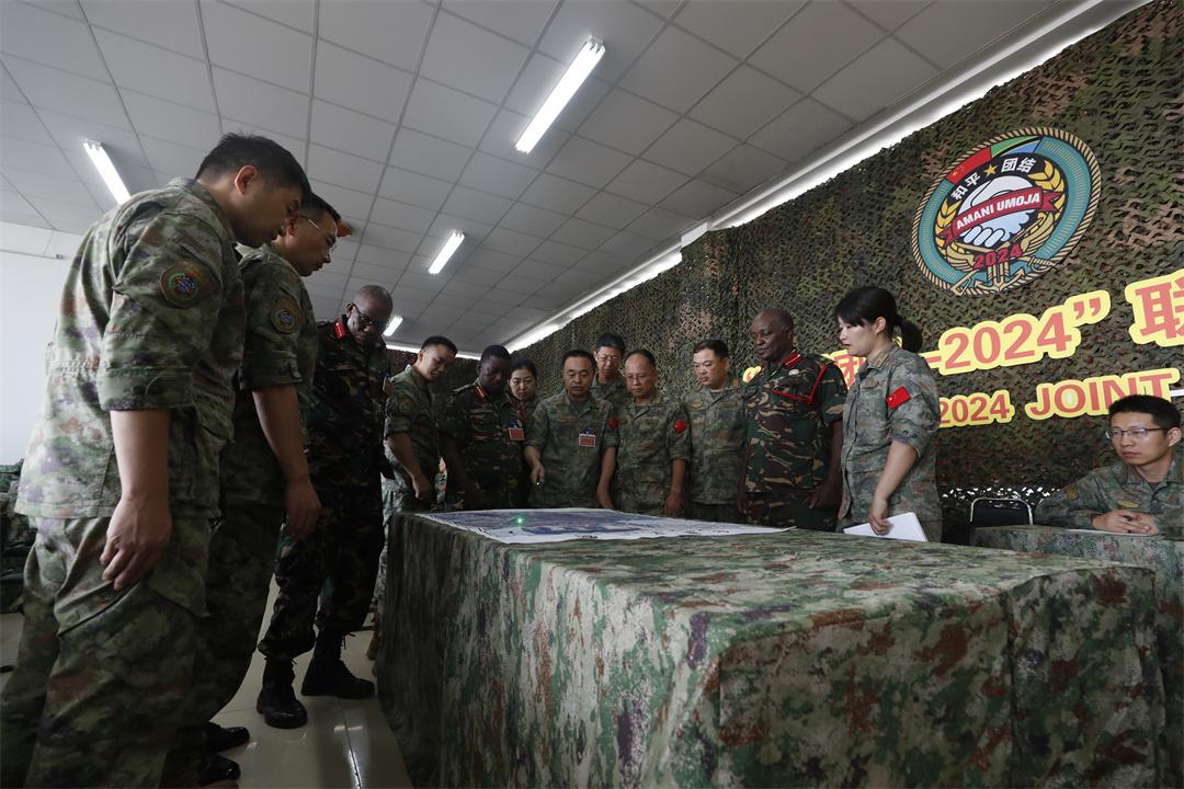 “××鎮(zhèn)周圍發(fā)生恐怖襲擊,請(qǐng)迅速處置……”當(dāng)?shù)貢r(shí)間8月4日下午,在坦桑尼亞馬坪加綜合訓(xùn)練中心的“和平團(tuán)結(jié)-2024”演習(xí)聯(lián)合指揮部?jī)?nèi),中坦兩軍參演部隊(duì)正在緊鑼密鼓組織聯(lián)合作戰(zhàn)籌劃。隨著一條條情報(bào)信息匯集至指揮信息系統(tǒng),恐怖分子活動(dòng)態(tài)勢(shì)逐漸明朗,各編組依案提出處置建議。