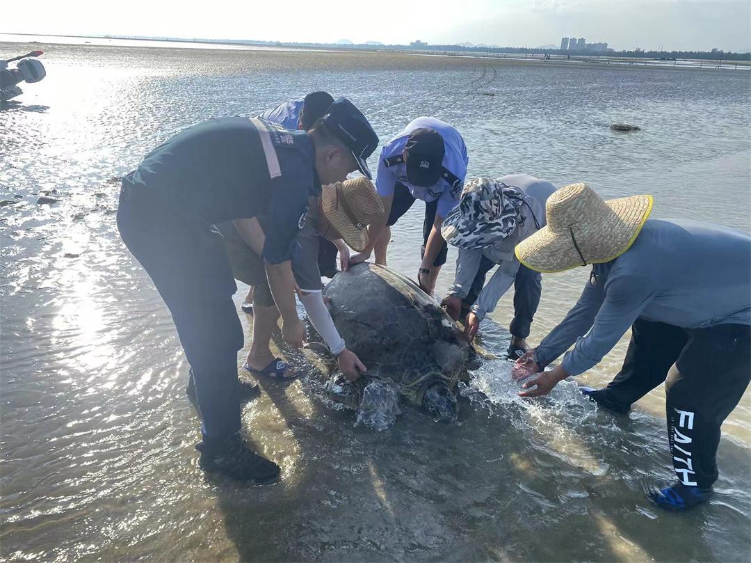 圖為發(fā)現(xiàn)擱淺綠海龜。