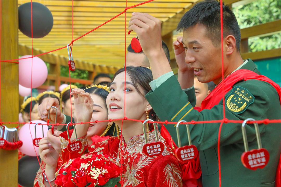 8月10日,在充滿浪漫和甜蜜的傳統(tǒng)節(jié)日七夕節(jié),武警青??傟犈e行“愛在高原·情定軍旅”集體婚禮暨軍地青年聯(lián)誼活動。在總隊領(lǐng)導(dǎo)、親朋好友、戰(zhàn)友們的見證下,30對新人喜結(jié)連理,百余名軍地優(yōu)秀青年相約在這里,共同開啟一場幸福和緣分的邂逅之旅。
