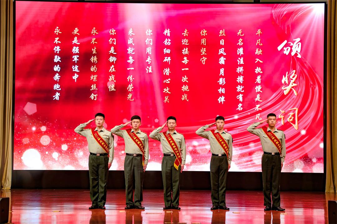 頒獎典禮分為流血流汗的“刀尖子”、默默無聞的“老耕?!?、身兼數職的“戰(zhàn)斗員”、小崗位上的“螺絲釘”、以心換心的“親兄弟”、忠孝兩全的“男子漢”六個篇章,通過官兵講述和文藝匯演穿插的方式進行。既有不怕流汗、不怕流血的軍事尖子、特戰(zhàn)骨干,又有為人老實、工作踏實的老黃牛;有衛(wèi)生員、炊事員、文書等既是戰(zhàn)斗員又是服務員的生動事跡,又有副班長、團支部副書記、風氣監(jiān)督員等小崗位上踐行“崗位雖小擔千鈞”的優(yōu)秀老兵;既有帶兵帶心、帶兵育人的軍中之母,又有在部隊盡忠、對家庭盡孝的優(yōu)秀老兵。