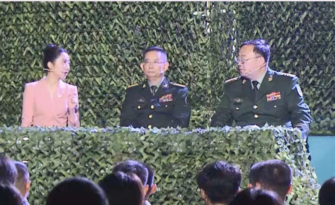 總臺主持人周瑜以及兩位嘉賓,解放軍文化藝術(shù)中心文藝輕騎隊編劇李文緒,武警宣傳文化中心副主任、《紅肩章》總編劇章曉宇,與戰(zhàn)友們邊觀看邊討論。