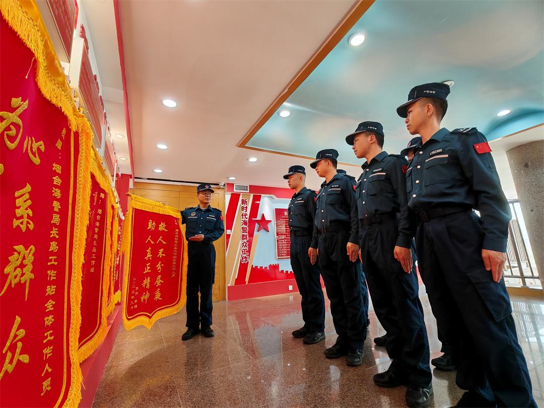 圖為6月8日,山東煙臺海警局長島工作站組織執(zhí)法員開展儀式教育。盧煜萱 攝