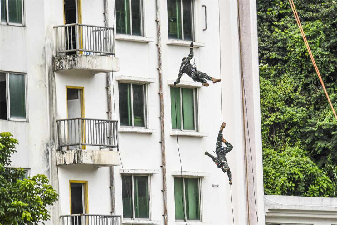 “為讓港澳青少年親身體驗(yàn)軍營訓(xùn)練,增進(jìn)對(duì)全民國防教育的認(rèn)識(shí)與認(rèn)同,我們展示了猛士突擊車、榴彈發(fā)射器、無人機(jī)、金屬探雷器等5大類60余種裝備?!蔽渚瘡V東總隊(duì)領(lǐng)導(dǎo)賴云飛介紹,他們著眼武警部隊(duì)特色,安排擒敵、攀登、射擊等課目演示,并邀請(qǐng)港澳青少年體驗(yàn)?zāi)M射擊。