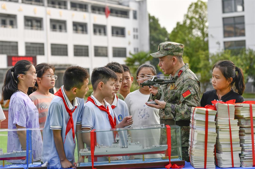 近日,安徽省合肥市廬陽區(qū)“全民國防教育月”活動走進三十崗鄉(xiāng)古城小學,通過普及國防知識、觀摩裝備模型等,引導廣大青少年熱愛國防,增強國防意識,提升國防素養(yǎng)。