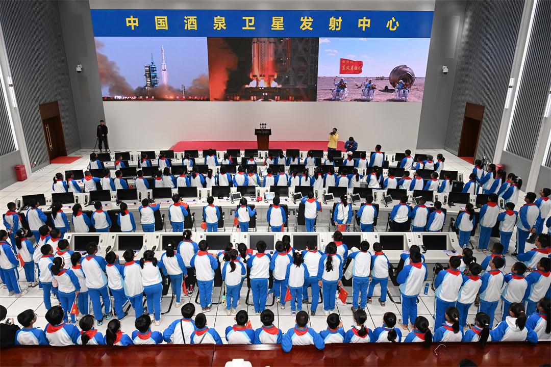 升旗儀式結(jié)束后,全體少先隊(duì)員來(lái)到東風(fēng)指揮控制大廳,這里是航天發(fā)射的任務(wù)指揮中心,神舟十九號(hào)發(fā)射任務(wù)圓滿成功的大紅屏透著喜慶的氛圍,這塊屏幕背后凝結(jié)著許許多多航天科技工作者的智慧和汗水,是他們共同托舉神箭飛天。
