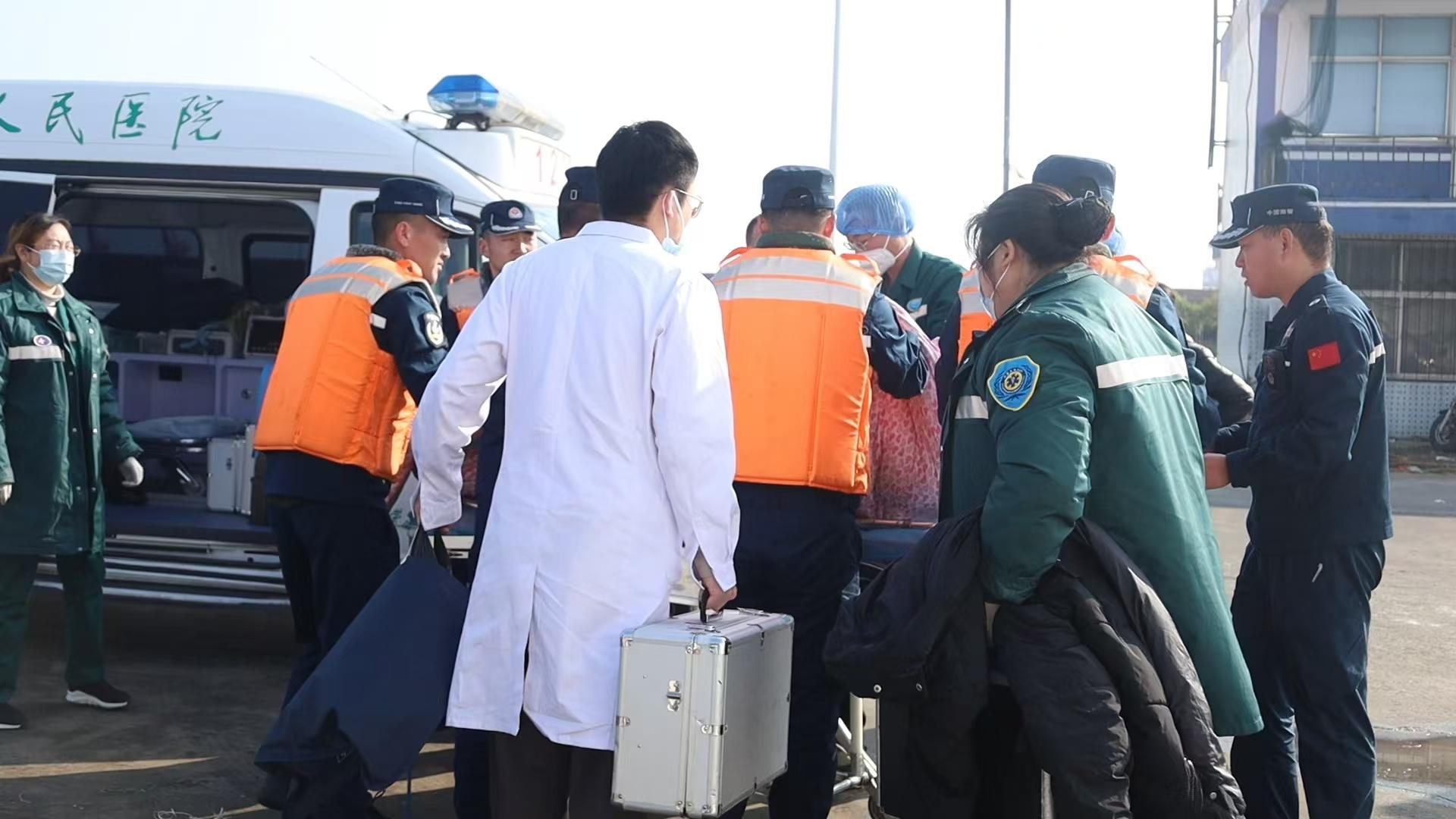 9時45分,白石艇靠泊榮成第二工作站碼頭。早已在此等候的當(dāng)?shù)?20救護車將8名船員轉(zhuǎn)運至當(dāng)?shù)蒯t(yī)院。經(jīng)過醫(yī)院全力救治,6人身體狀況穩(wěn)定,1人不幸失去生命體征,另1人仍在搶救中。