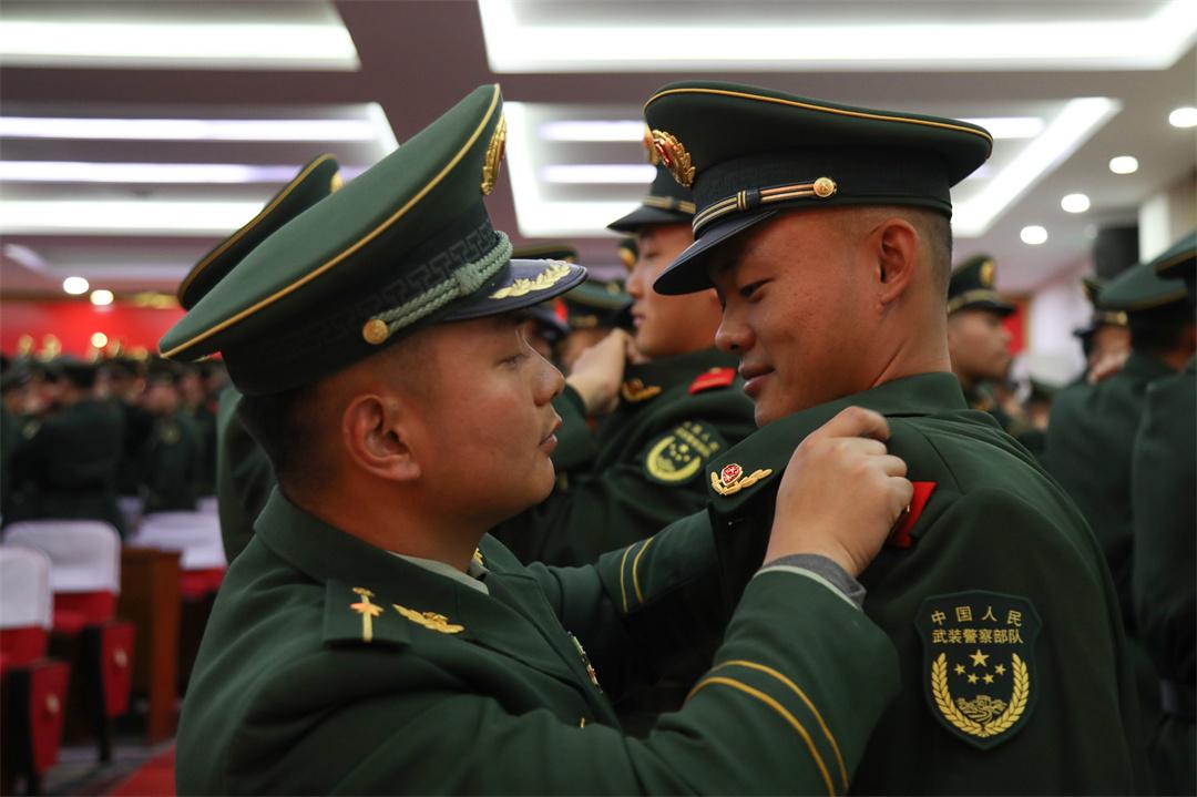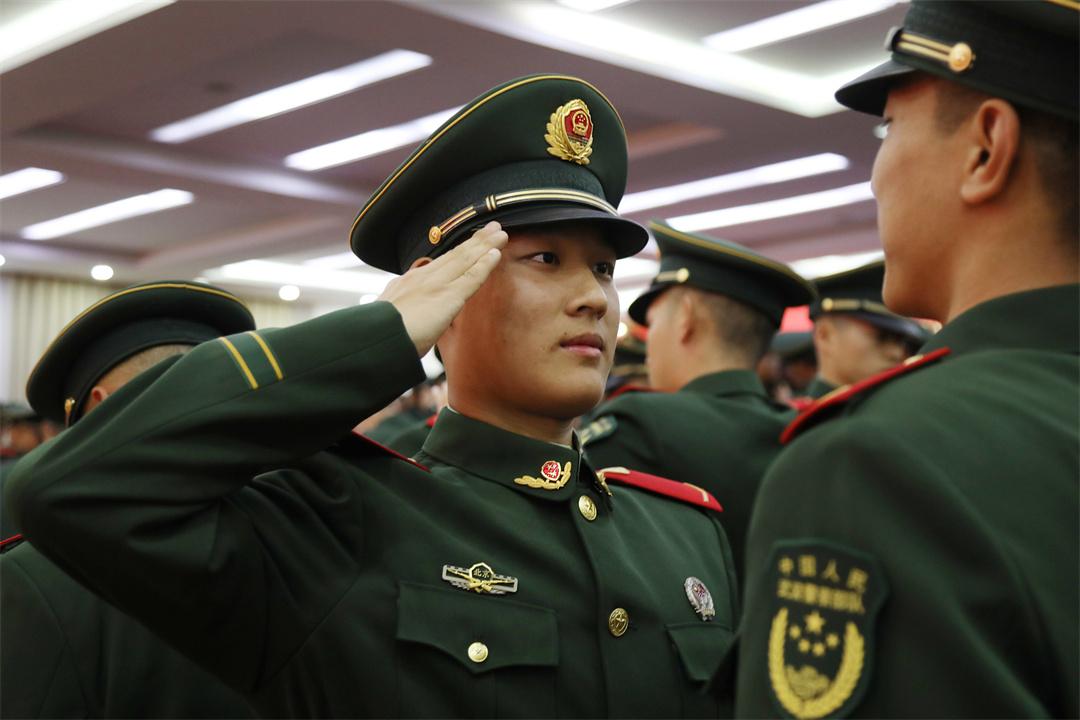 授銜儀式上,全體新戰(zhàn)友相互佩戴嶄新的紅肩章和閃耀的警徽,互敬軍禮,眼神中閃爍著驕傲與自豪的光芒。從這一刻起,他們正式成為武警部隊(duì)的一員,肩負(fù)起保家衛(wèi)國神圣使命。“苦練殺敵本領(lǐng),時刻準(zhǔn)備戰(zhàn)斗,決不叛離軍隊(duì),誓死保衛(wèi)祖國。”全體新兵高舉右拳莊嚴(yán)宣誓,誓詞鏗鏘,字字千鈞,詮釋著軍人的使命和擔(dān)當(dāng)。