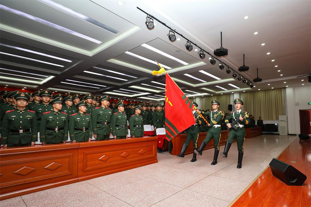 儀式在雄壯的中國人民解放軍軍歌聲中拉開帷幕。“迎武警部隊(duì)旗!”隨著口令下達(dá),三名擎旗手高舉武警部隊(duì)旗正步走過臺前,全體新兵軍姿挺拔、精神昂揚(yáng),向武警部隊(duì)旗行注目禮。