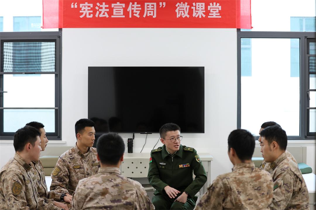 圖為法官在班排為官兵解讀憲法知識(shí)。郭曉寧 攝