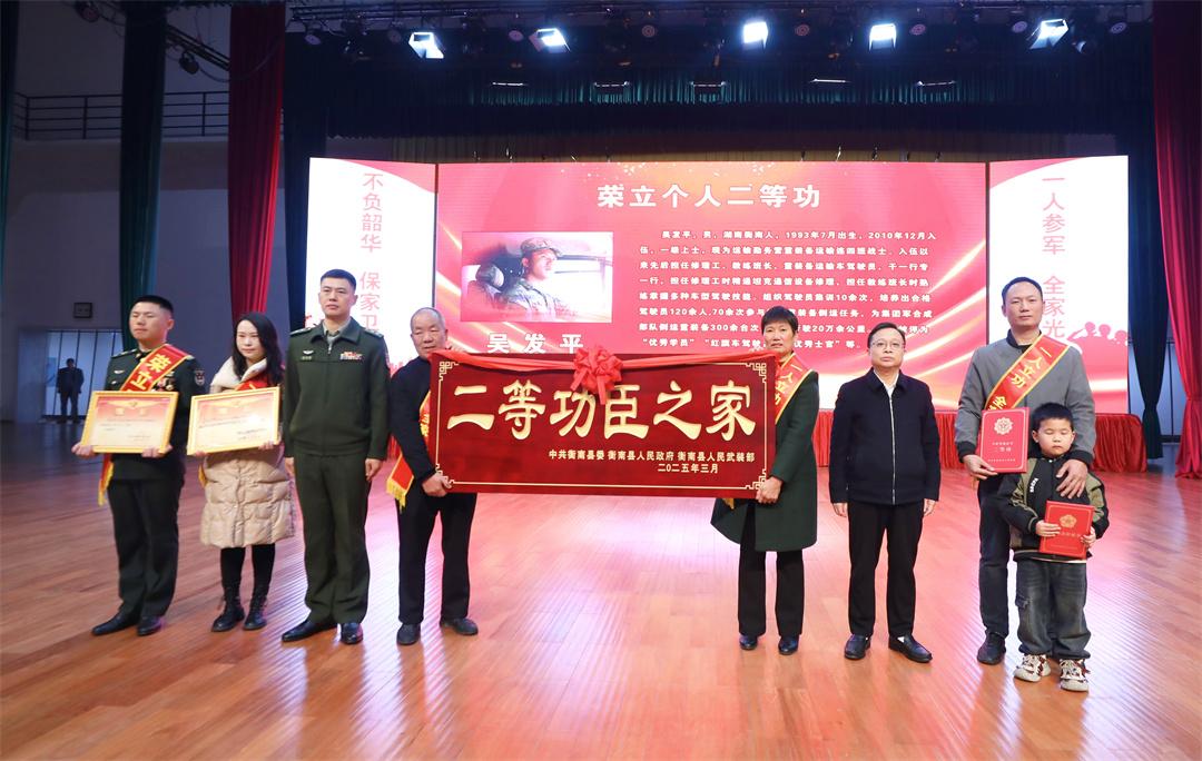 3月14日,湖南省衡陽(yáng)市衡南縣舉辦歡送預(yù)定新兵活動(dòng),邀請(qǐng)17名立功軍屬與127名入伍新兵家屬齊聚一堂。軍地領(lǐng)導(dǎo)分別為他們頒授匾牌和光榮之家軍屬牌。