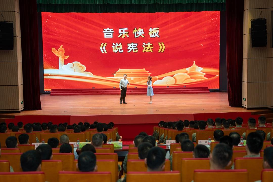 “我是一個(gè)老兵,只要能舉起右手,我都會(huì)向祖國(guó)敬禮……”原創(chuàng)小品《敬禮》講述了一位80多歲的老兵在麒麟山療養(yǎng)院的故事。小品情節(jié)感人肺腑,既有笑點(diǎn)又有淚點(diǎn),深受官兵歡迎。在深圳某部軍營(yíng),一場(chǎng)由法官、文藝工作者等聯(lián)袂演出的專(zhuān)題展演,讓法治宣傳不僅走“新”,而且走“心”。《尚法歌》《說(shuō)憲法》等節(jié)目充滿法治元素、兵的情懷。一名陸軍中士看完演出,意猶未盡地說(shuō):“以文藝形式把法治關(guān)鍵點(diǎn)呈現(xiàn)出來(lái),既教育了人,又滋養(yǎng)了心。”