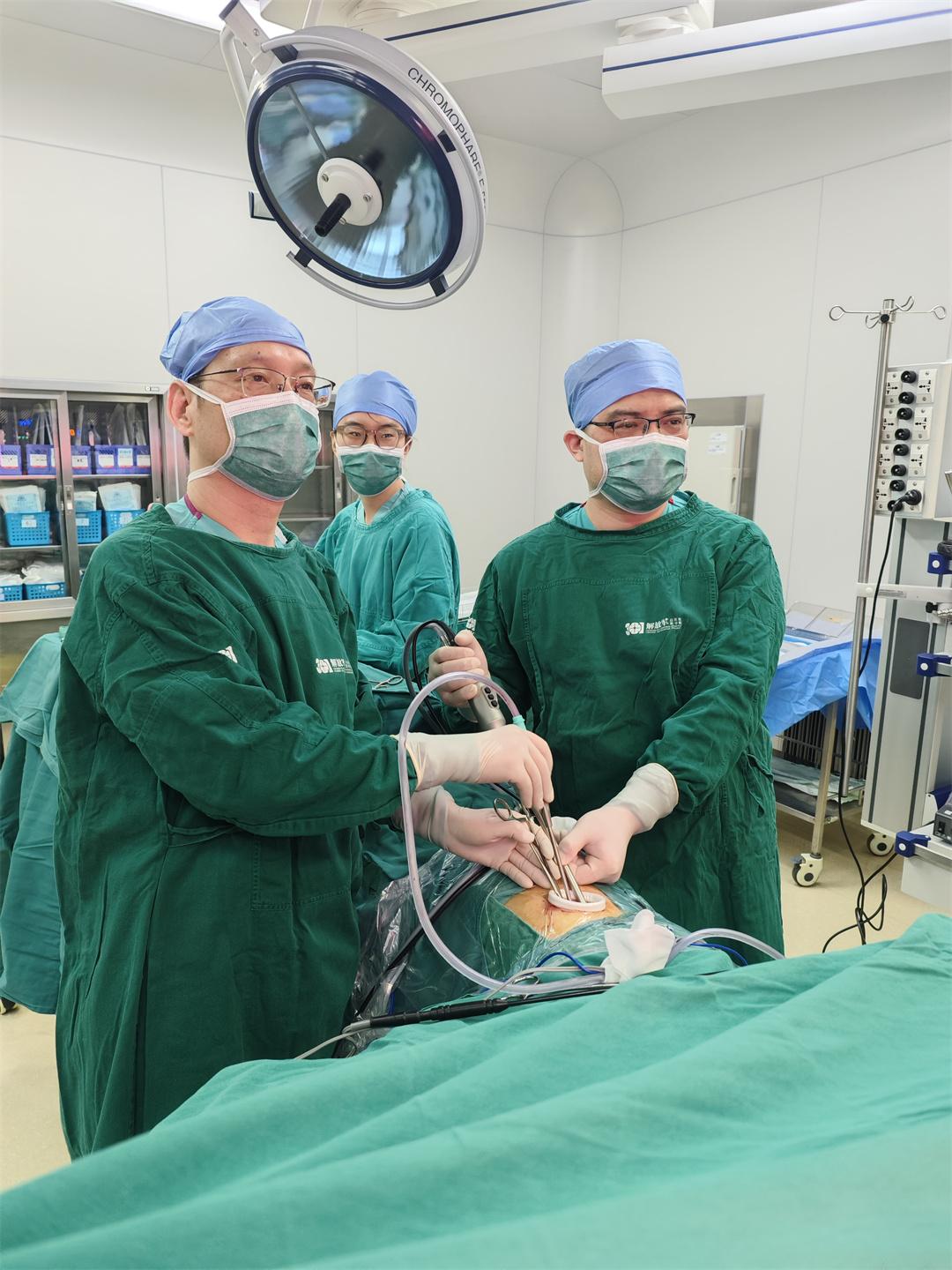 宋偉安帶領(lǐng)團隊反復研究胸部CT和病情資料,并與麻醉科、外科ICU等多學科協(xié)作,制定詳細的圍手術(shù)期應急預案。今年2月19日下午,手術(shù)開始。在胸腔鏡輔助下,宋偉安團隊精準操作,逐步完成開胸、剖開心包、游離神經(jīng)、分離肺動脈圓錐、阻斷肺動脈主干等關(guān)鍵步驟。經(jīng)過3個多小時努力,團隊成功切除肺門根部侵入心包的惡性腫瘤,并徹底清掃了轉(zhuǎn)移的淋巴結(jié)。