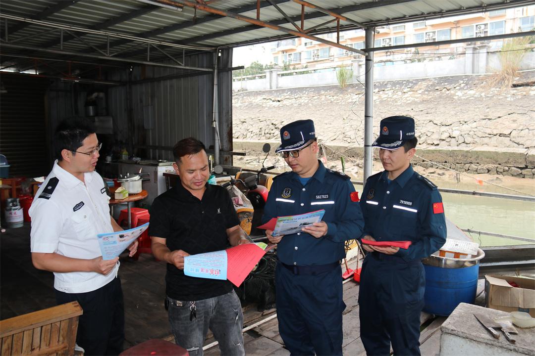圖為執(zhí)法員為漁民群眾講解休漁規(guī)定。