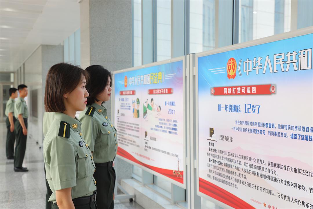 圖為官兵們觀(guān)看民法典展板。王蒙 攝