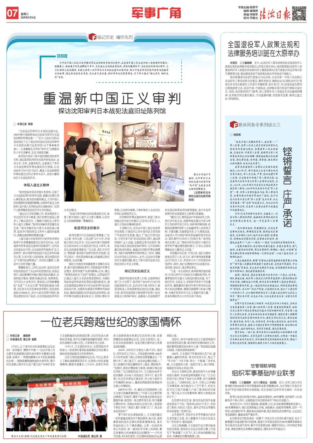 這次文物捐贈,王玉堂因行動不便未能親自前往現場。得知孫女在紀念館留言簿上代筆寫下“勛章屬于人民”時,老人渾濁的眼睛泛起淚光,布滿皺紋的嘴角微微上揚。