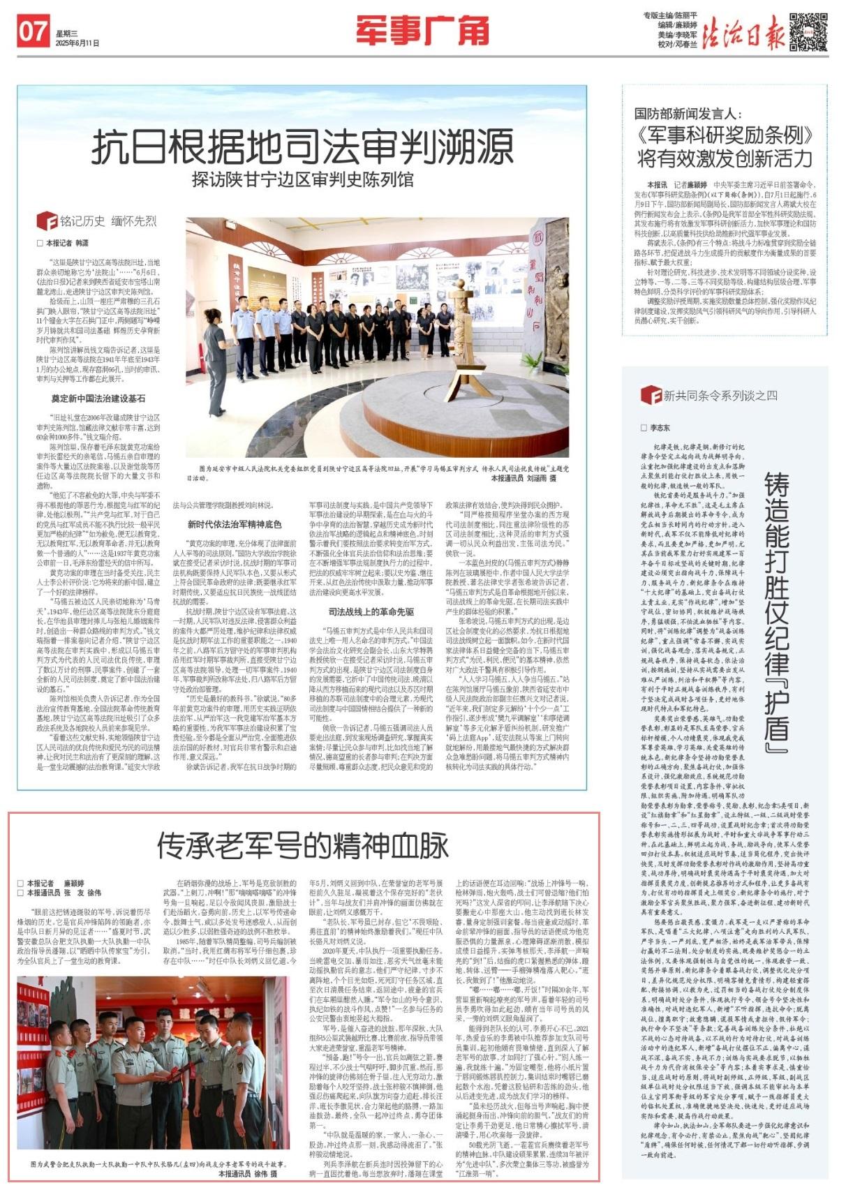 1985年,隨著軍隊(duì)精簡整編,司號兵編制被取消。“當(dāng)時,我用紅綢布將軍號仔細(xì)包裹,珍存在中隊(duì)……”時任中隊(duì)長劉炳義回憶道。今年5月,劉炳義回到中隊(duì),在榮譽(yù)室的老軍號展柜前久久駐足。凝視著這個保存完好的“老伙計(jì)”,當(dāng)年與戰(zhàn)友們并肩沖鋒的畫面仿佛就在眼前,讓劉炳義感慨萬千。