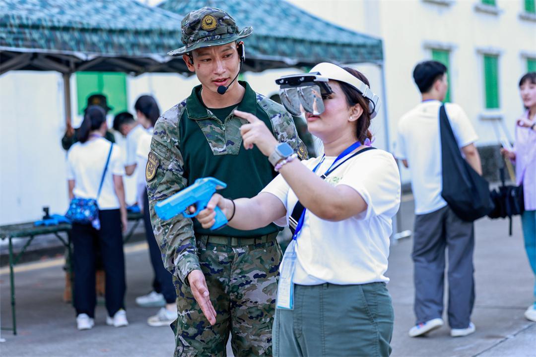 武警廣東總隊(duì)政治工作部領(lǐng)導(dǎo)賴云飛介紹:“今年的進(jìn)軍營(yíng)活動(dòng)融入紀(jì)念抗戰(zhàn)勝利80周年元素,體現(xiàn)粵港澳三地同心抗敵、血脈相依的歷史背景,讓孩子們?cè)谶@里打開眼界,有所啟發(fā)。”