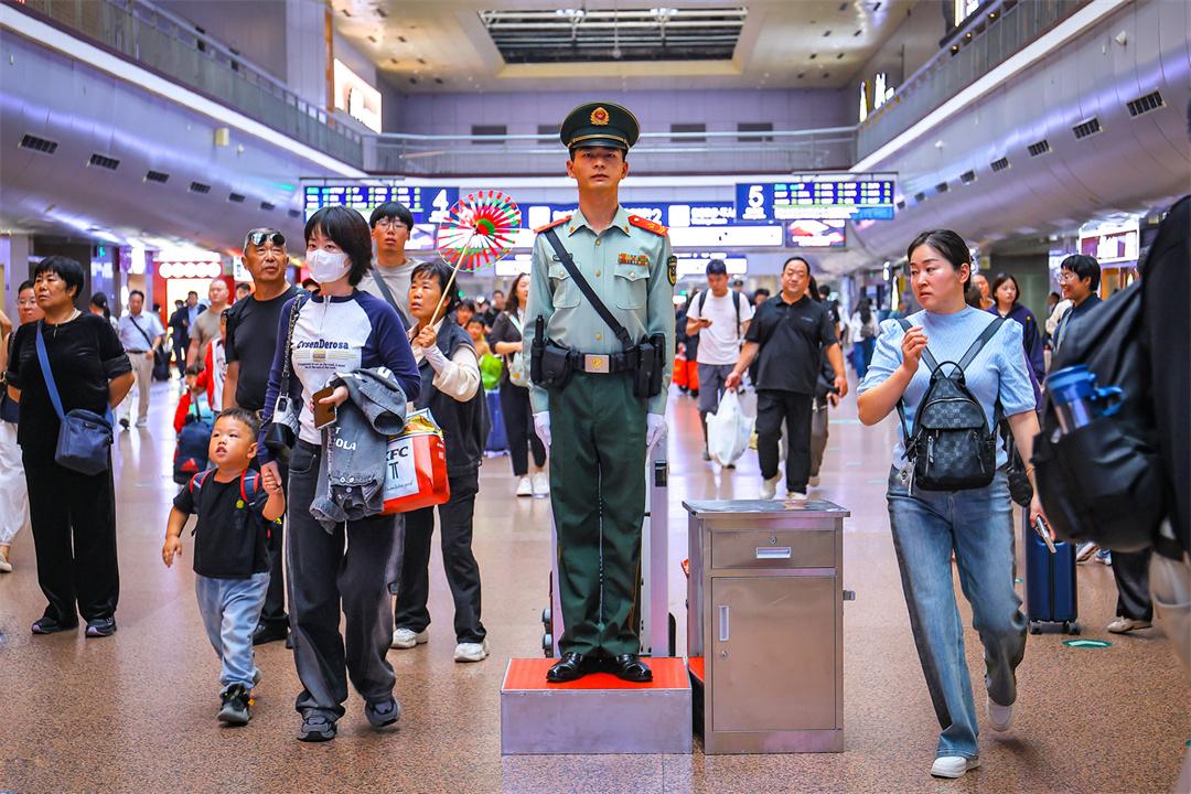 國慶假期最后兩天,北京鐵路交通樞紐迎來雙向返程客流高峰。為保障旅客安全有序出行,武警北京總隊執(zhí)勤第六支隊官兵堅守執(zhí)勤戰(zhàn)位,與重點站區(qū)管委會、鐵路公安等部門搭建聯(lián)防聯(lián)控體系,通過實時客流監(jiān)測系統(tǒng)動態(tài)調(diào)整勤務部署,在進出站口、安檢區(qū)、候車大廳等關鍵點位設置警戒哨,協(xié)助維護秩序,熱心提供幫助,以實際行動確保旅客平安順利出行。