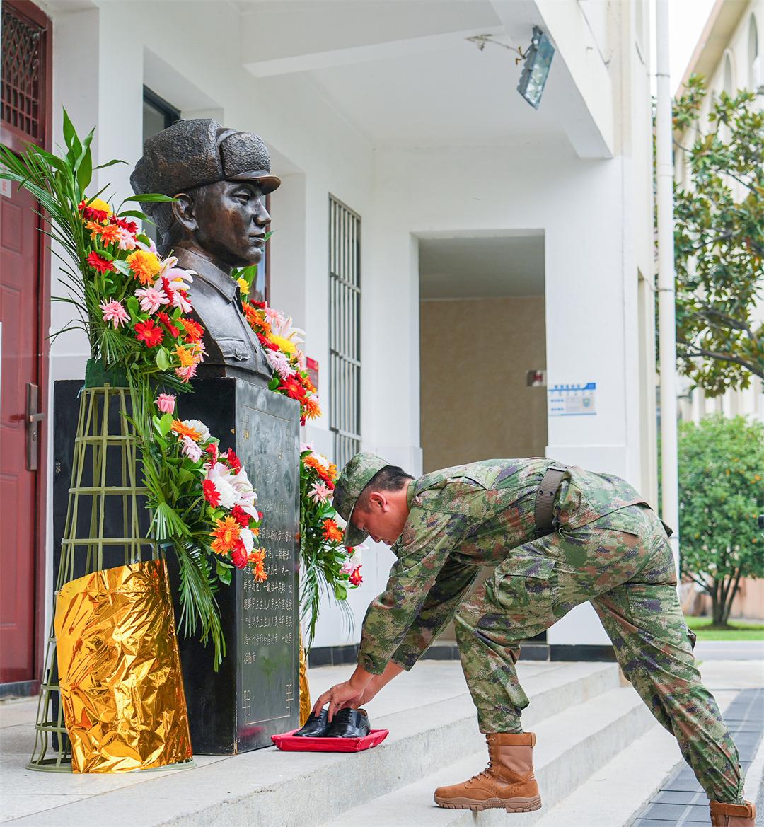 圖為全體官兵面向孫占元老排長銅像脫帽,肅立默哀,致以深切緬懷。劉東祥 攝