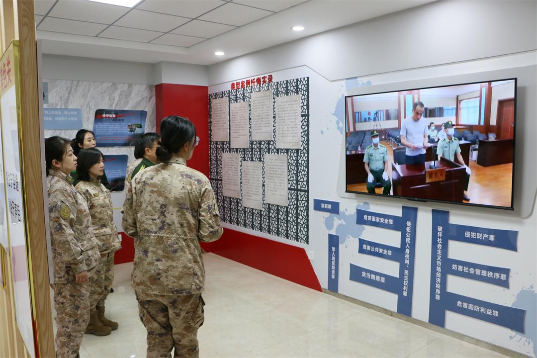 圖為蘭州軍事法院邀請部隊官兵參觀該院法治教育基地。曹淑奐 攝