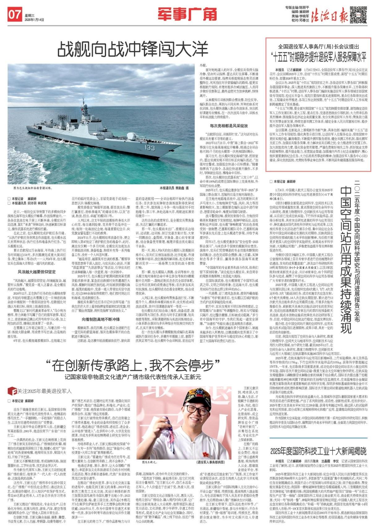 “十五五”時期,要全面對照國家“十五五”規(guī)劃綱要安排部署,謀劃確定退役軍人工作發(fā)展目標、重大工程、重點任務,完善思想政治引領機制;大力傳承弘揚英烈精神;圍繞服務經(jīng)濟社會高質量發(fā)展,充分發(fā)揮退役軍人作用;聚焦助力強軍興軍事業(yè)新發(fā)展,持續(xù)完善雙擁工作體系;錨定全體人民共同富裕目標,穩(wěn)步提升退役軍人服務保障水平。