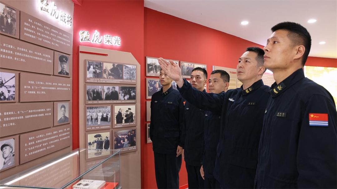 “以前的艦艇裝備簡陋,先輩們靠著對黨的絕對忠誠,在海上槍林彈雨中殺出一條血路?,F(xiàn)在裝備先進了,但忠誠的底色不能變,越是走得遠、沖在前,越不能偏離航向?!奔t河艦一級軍士長韓建廷站在文化長廊前對年輕艦員說。
