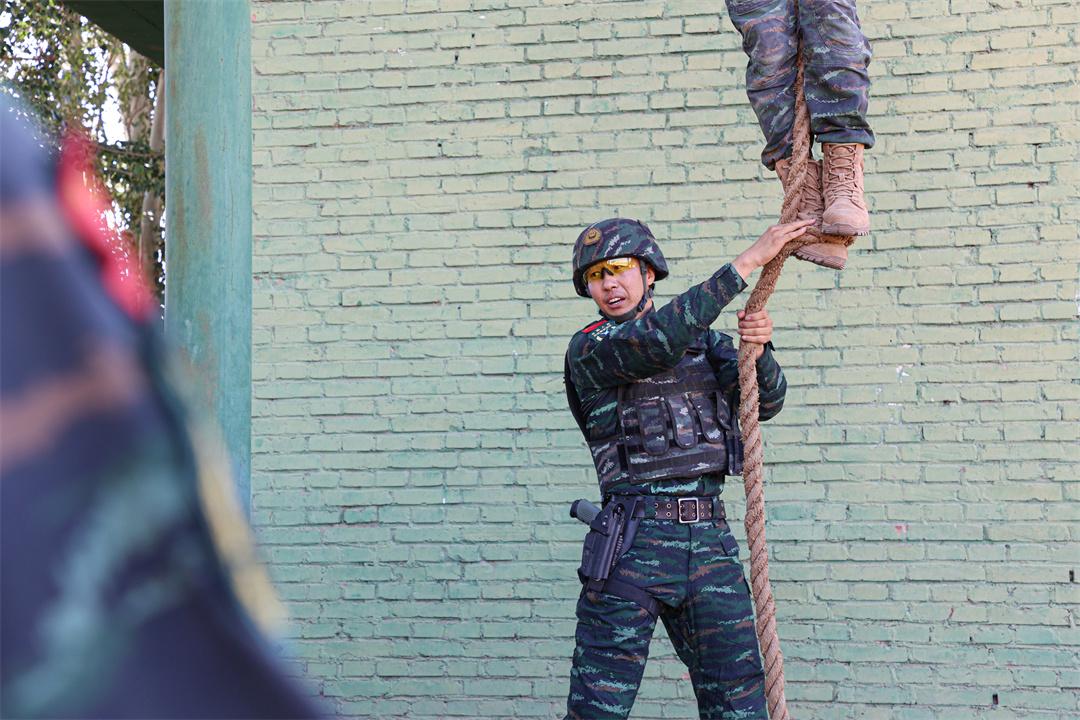 翻墻、抵近、撲倒……布和圖木爾憑借過(guò)硬的戰(zhàn)術(shù)動(dòng)作,迅速突入,在犯罪嫌疑人還沒(méi)有任何反應(yīng)的情況下,便將其制服。