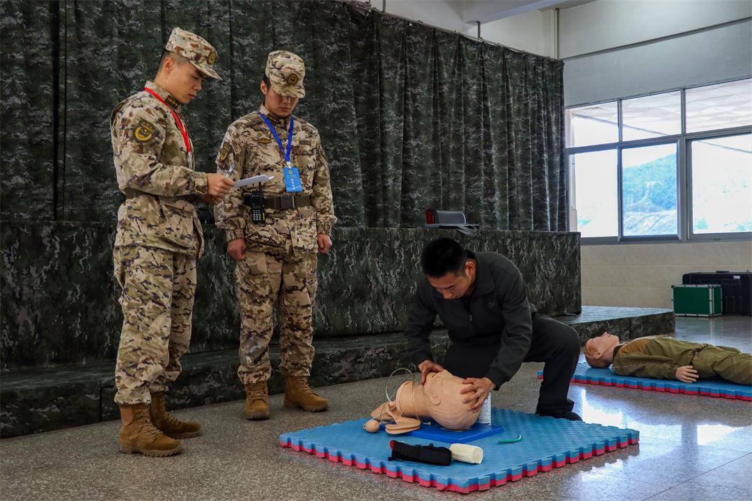 圖為參考人員進(jìn)行執(zhí)勤專(zhuān)業(yè)技能考核。