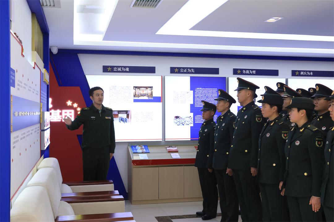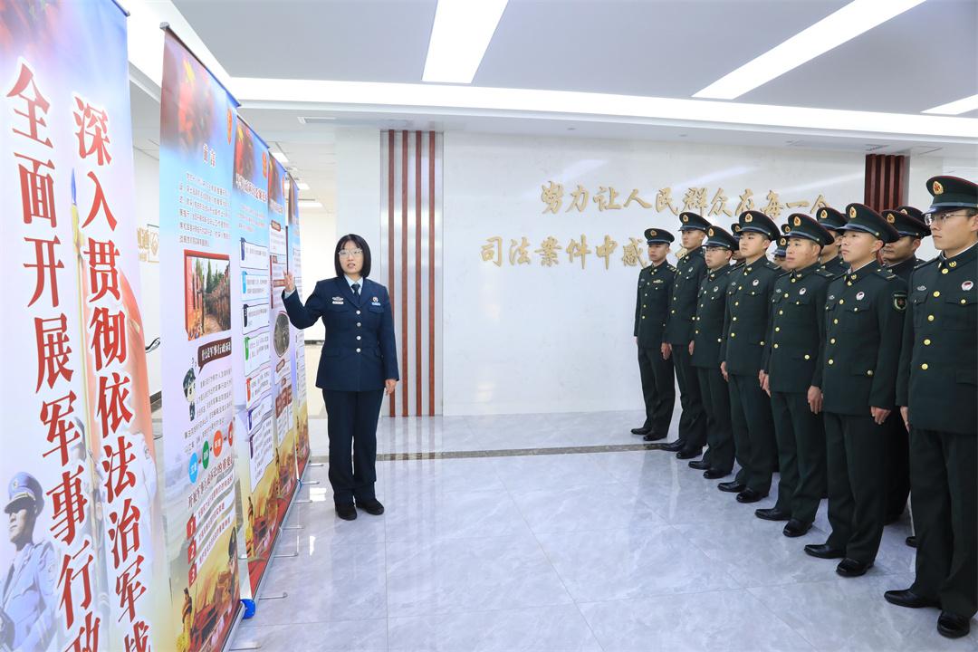 新兵們參觀了合肥軍事法院法治文化長廊、法治宣傳產(chǎn)品展柜和訴訟服務中心。在專門設立的“涉軍法律政策”展區(qū),軍事法官結(jié)合宣傳展板和多媒體設備,深入淺出地講解刑法、民法典涉軍條款以及軍人地位和權(quán)益保障法相關內(nèi)容。