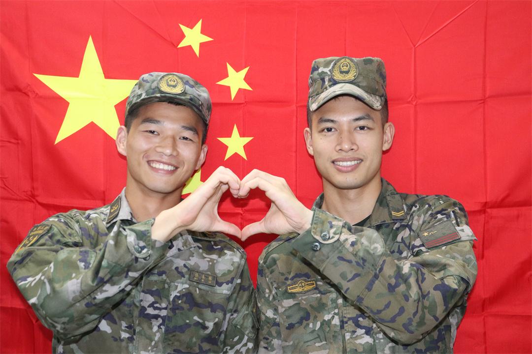圖為譙禾林生前(左)與戰(zhàn)友在國(guó)旗前合影。蘇杰 陳書航 攝