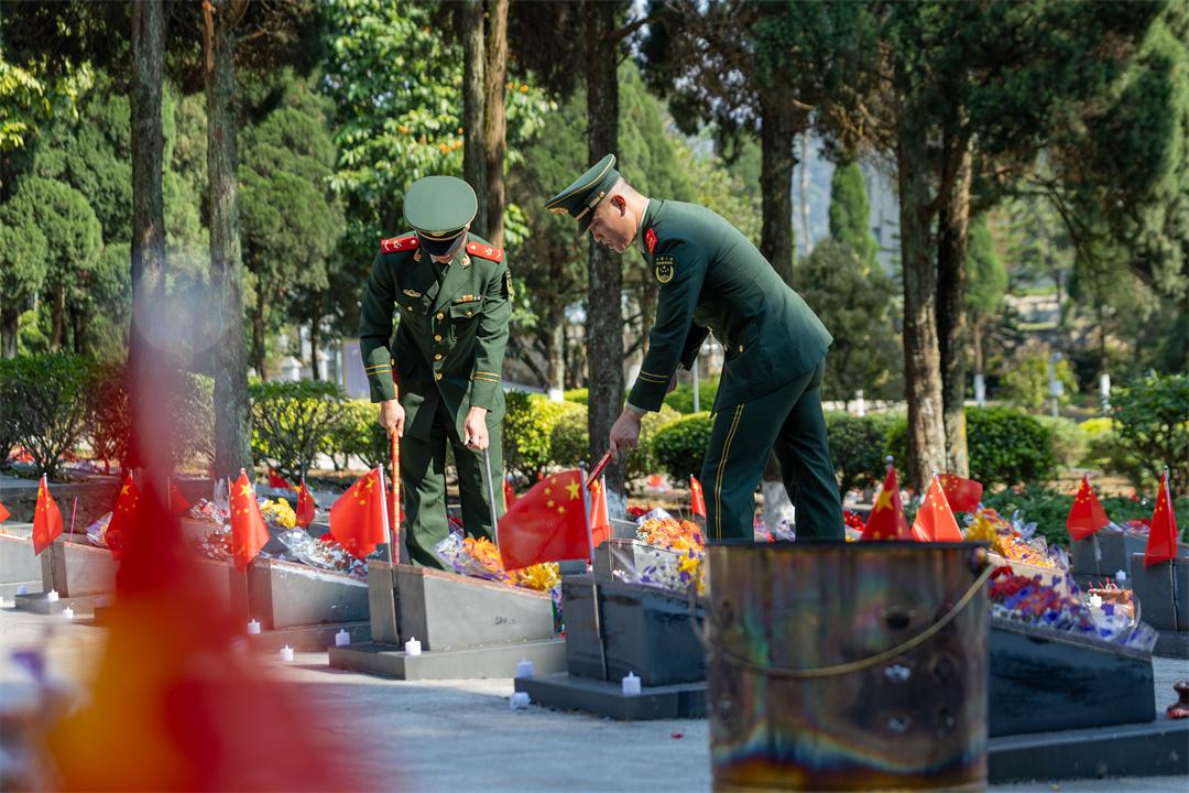 宣誓結(jié)束后,官兵們細(xì)心擦拭每一塊烈士墓碑,清理周邊雜物雜草。隨后,大家依次緩步上前獻(xiàn)花,寄托對(duì)革命先烈的無(wú)限哀思與崇高敬意。