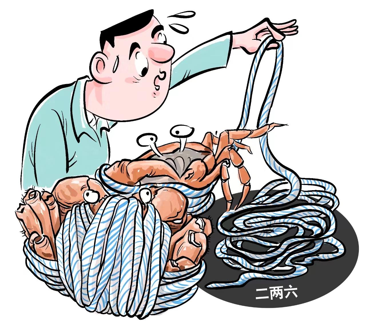 點(diǎn)評(píng):商家通過(guò)“綁蟹繩”變相增加螃蟹重量,違反誠(chéng)信經(jīng)營(yíng)、公平交易原則,損害消費(fèi)者的合法權(quán)益。這種自以為是的小聰明,換不來(lái)良好口碑和長(zhǎng)久發(fā)展,最終只能是“搬起石頭砸自己的腳”?!∥模瘎⑼蹙?span style="text-wrap: wrap;">漫畫(huà)/高岳