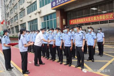 7月6日,強戒一所舉行搶險滅火見義勇為表彰儀式。強戒一所黨委副書記、紀委書記賴國強為參與救火的警戒護衛(wèi)隊隊員頒發(fā)榮譽證書和獎勵金,充分肯定警戒護衛(wèi)隊對兩次火情的妥善處置,贊揚其是一支訓練有素、業(yè)務(wù)精湛、有戰(zhàn)斗力的隊伍。
