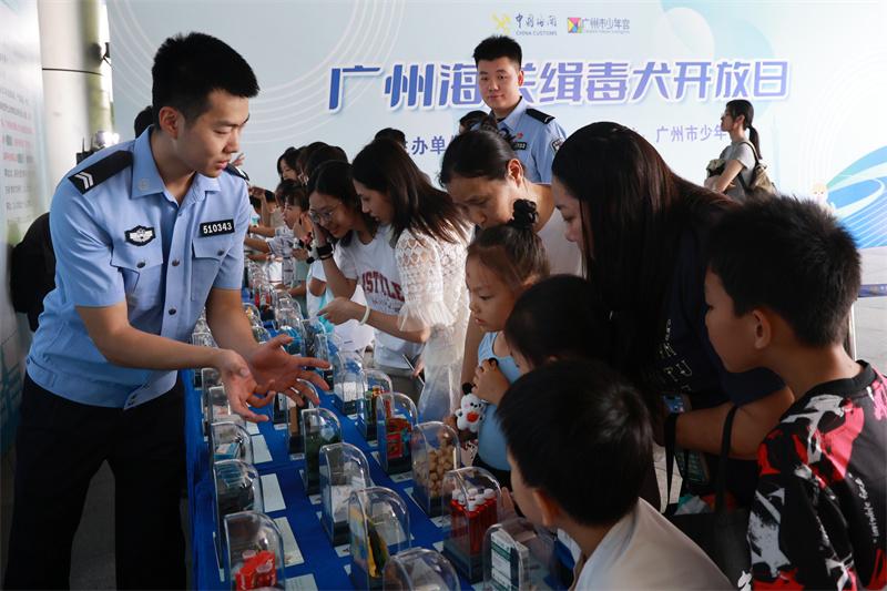 6月22日,廣州海關(guān)聯(lián)合廣州市少年宮舉辦“緝毒犬開放日”活動(dòng),通過寓教于樂的禁毒宣傳活動(dòng),讓廣大市民朋友在趣味游戲中了解海關(guān)打擊毒品走私工作成效、禁毒常識(shí),并與海關(guān)緝毒犬進(jìn)行現(xiàn)場親密互動(dòng),活動(dòng)吸引了400余名市民參加。
