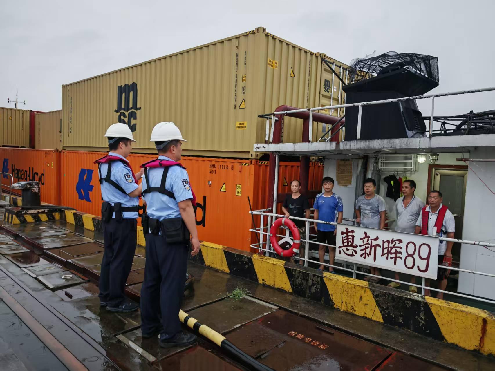 圖為保障“中國制造”順暢出口,中山邊檢站民警在雷雨季節(jié)冒雨對出境船舶進行查驗