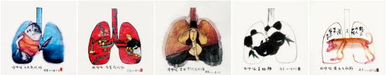 在舒勇“每日一畫”創(chuàng)造的眾多意象中,《同呼吸共命運》系列大概是最簡單至極的表達(dá)。作品運用“肺”的基本形態(tài)作為背景容器,將世界各國著名藝術(shù)家作品及思想融進(jìn)了這個基本形態(tài)的肺容器中。以此來表達(dá),我們雖然生活在不同的地方,來自不同的國家,擁有不同的膚色、不同的文化,但是我們有同樣的肺,呼吸在同一片藍(lán)天下。