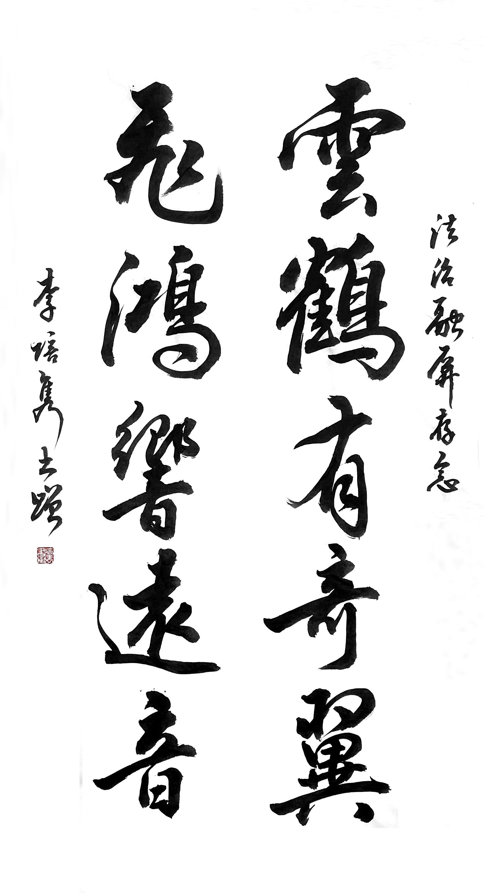 釋文:云鶴有奇翼 飛鴻響遠音