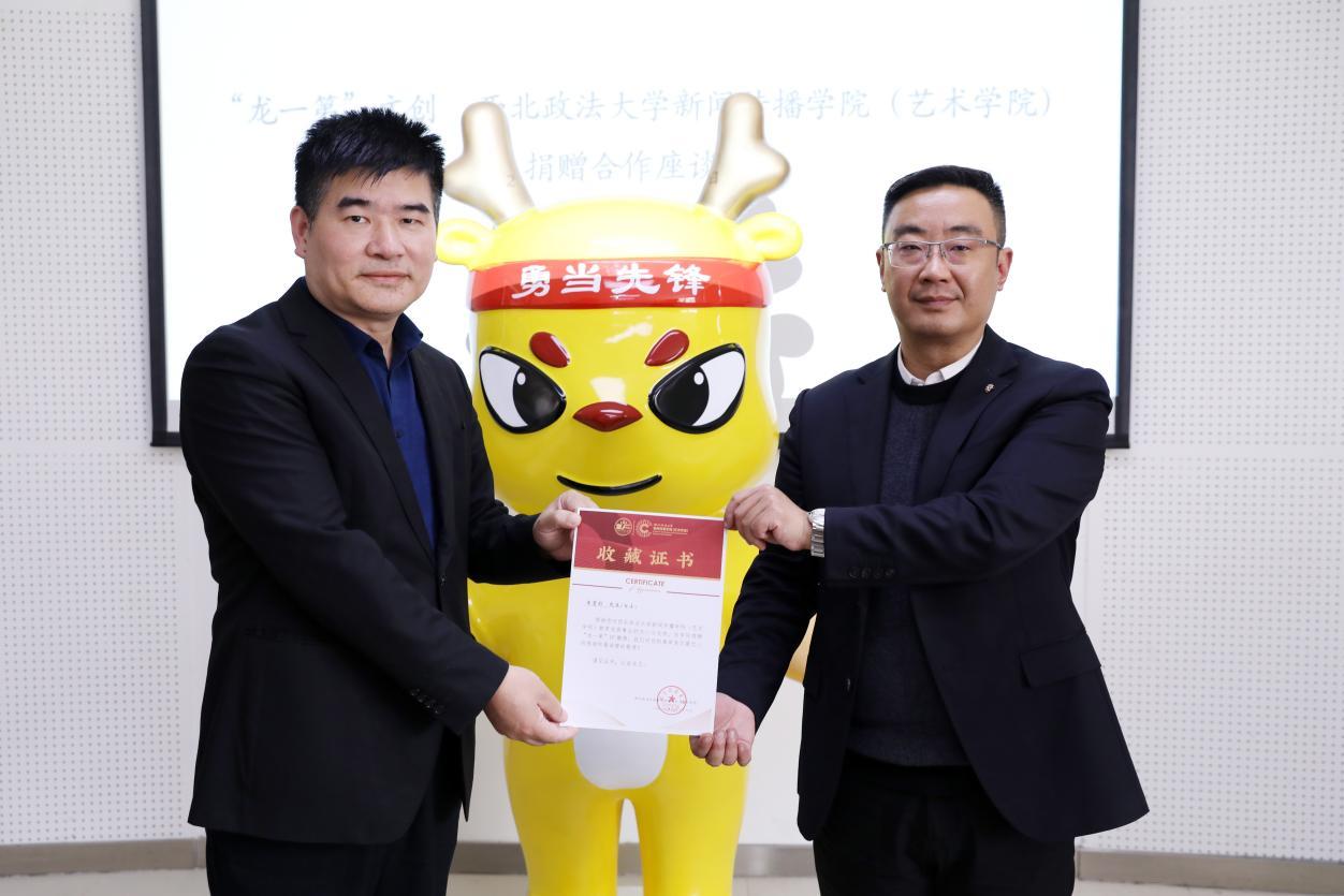 3月29日,深圳文創(chuàng)品牌“龍一第”向西北政法大學新聞傳播學院(藝術學院)捐贈IP雕塑儀式在長安校區(qū)舉行。