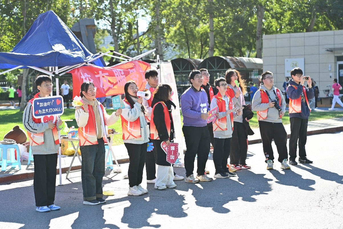 賽道兩旁站滿了為運(yùn)動(dòng)員加油的同學(xué),揮舞著加油棒,擊鼓呼喊著“運(yùn)動(dòng)員加油”的口號(hào)。志愿者、安保人員、醫(yī)務(wù)人員也堅(jiān)守崗位,用熱情的服務(wù)和忙碌的身影保障比賽順利進(jìn)行。