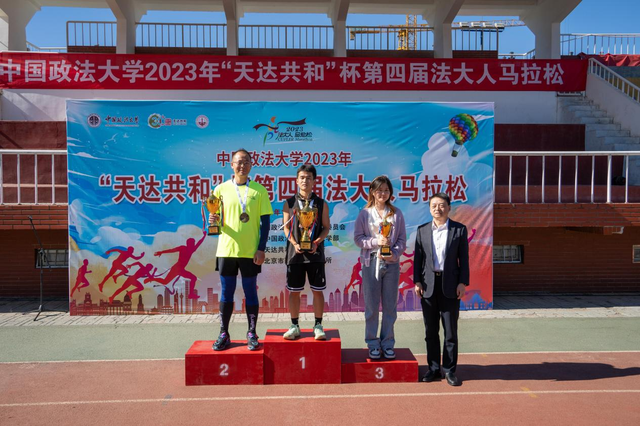 證據(jù)科學(xué)研究院研究生王東亞同學(xué)在歡呼聲中第一個(gè)沖過(guò)了終點(diǎn)線。教工朱林、校友蒲彥萍、證據(jù)科學(xué)研究院王東亞同學(xué)、法學(xué)院杜睿思同學(xué)分別為第四屆法大人馬拉松教工校友男子組、教工校友女子組、學(xué)生男子組、學(xué)生女子組冠軍。刑事司法學(xué)院、社會(huì)學(xué)院分獲甲、乙組團(tuán)體第一。