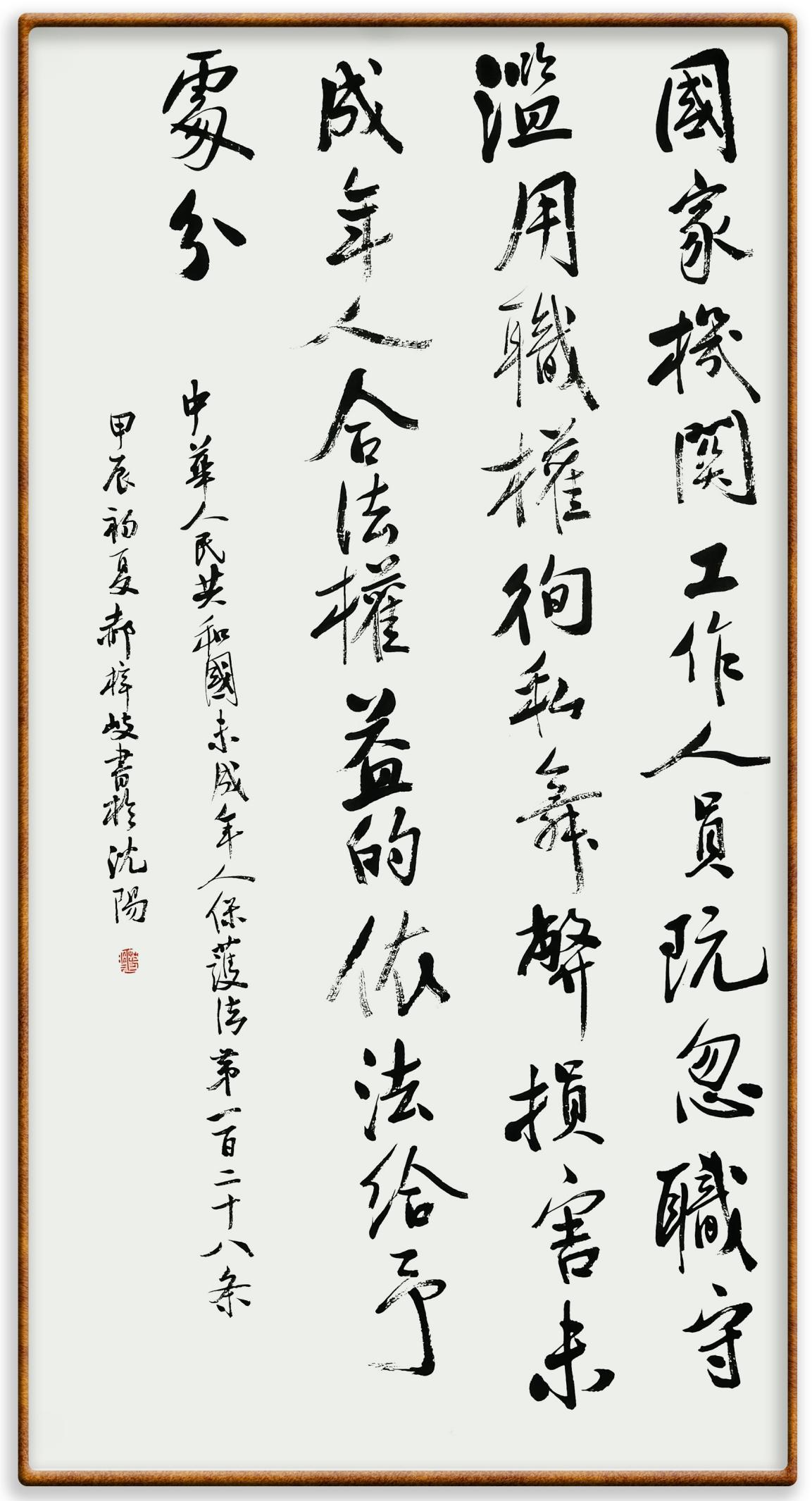 2020年7月11日,在司法部普法與依法治理局指導下,由法制日報社主辦、法報文化傳媒(北京)有限公司和北京千音文化傳媒有限公司聯(lián)合承辦的“書· 法”系列活動正式啟動?;顒又荚跒閯?chuàng)新法治宣傳教育,多開一點腦洞、多花一點心思、多出一點力量、多做一點貢獻,引領(lǐng)和推動更多的人拿起筆來學法、寫法,在不斷“書·法”過程中,提升自身的法治素養(yǎng),在全社會弘揚法治精神?;顒訂右詠?,已先后組織書寫民法典、土地管理“一法一條例”、法律援助法、憲法、行政處罰法、安全生產(chǎn)法、《信訪工作條例》、野生動物保護法、澳門特別行政區(qū)基本法、香港特別行政區(qū)基本法等多部法律法規(guī)。