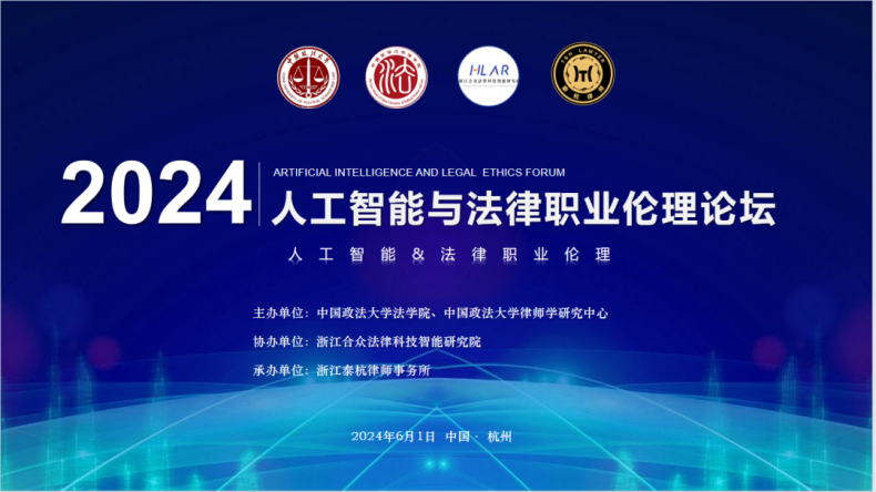 2024年6月1日,“人工智能與法律職業(yè)倫理”論壇在浙江杭州成功舉辦。本次論壇由中國政法大學(xué)法學(xué)院、中國政法大學(xué)律師學(xué)研究中心主辦,浙江合眾法律科技智能研究院協(xié)辦,浙江泰杭律師事務(wù)所承辦。來自中國政法大學(xué)、浙江大學(xué)、河南大學(xué)、中國計量大學(xué)、浙江警察學(xué)院、浙大城市學(xué)院、浙江警官職業(yè)學(xué)院等高等院校的專家學(xué)者,與來自上海市人民檢察院、杭州互聯(lián)網(wǎng)法院、杭州市互聯(lián)網(wǎng)公證處、浙江省律師協(xié)會、香港和解中心、國際爭議解決及風(fēng)險管理協(xié)會、北京市隆安律師事務(wù)所的實務(wù)專家共計五十余人參加會議,共同研討人工智能與法律職業(yè)倫理發(fā)展的前沿問題。